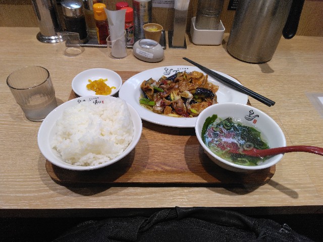 先日、れんげ食堂で茄子と豚肉の辛味噌炒め定食を食べました😀